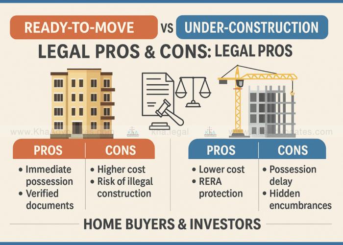 Read MoreIntroductionBuying a flat is a milestone. But a critical question arises for every buyer:Should you go for a ready-to-move-in flat or an under-construction property?While both options come with distinct advantages, the legal implications, risks, and due diligence steps differ drastically. This blog breaks down the legal pros and cons of both choices—especially for first-time home buyers, real estate investors, and NRIs planning to invest in areas like New Town, Salt Lake, and Kolkata.✅ Ready-to-Move-in Flats: Legal Pros & ConsA ready-to-move-in flat is one where construction is completed, possession is granted, and the buyer can immediately shift in or start renting it out.Legal Advantages of Ready-to-Move Properties1. Clear Title & Immediate PossessionYou get to verify the actual property ownership, completion certificate, occupancy certificate, and municipal approvals.No uncertainty over possession timelines.2. No GSTAs per current tax laws, GST is not applicable on ready-to-move properties that have received Completion Certificate (CC).3. What You See Is What You GetThe buyer can physically inspect the flat, locality, and building condition—making legal verification easier.4. Easier to Conduct Legal Due DiligenceYour lawyer can perform a property title search, verify the chain of ownership, check mutation, and confirm that the flat is free from encumbrances.Legal Disadvantages of Ready-to-Move Properties1. Higher CostPer square foot prices are typically 10–20% higher than under-construction properties.2. Risk of Illegal ConstructionMany “ready” flats, especially in developing zones like New Town and Rajarhat, are illegally built without proper sanction plans. Without legal verification, you risk demolition or penalties.3. No Time to Rectify Legal IrregularitiesOnce you purchase, any pending litigation, land disputes, or illegalities become your burden.🏗️ Under-Construction Flats: Legal Pros & ConsAn under-construction property is still being developed and usually offers staged payment plans and relatively affordable pricing.Legal Advantages of Under-Construction Properties1. Lower Cost with FlexibilityPrice per square foot is often lower, especially during pre-launch stages.Payment plans are staggered across construction milestones, helping with financial planning.2. RERA Registration is MandatoryBuilders must register under RERA (Real Estate Regulation and Development Act). This adds a layer of transparency and legal protection for the buyer.3. Scope for CustomisationBuyers may request minor changes in layout, flooring, or fittings during the construction phase.Legal Disadvantages of Under-Construction Properties1. Possession Delay RiskDespite RERA, delays of 1–2 years are still common, especially in West Bengal where monitoring is lax.2. Developer Fraud or AbandonmentNumerous cases in New Town and Salt Lake Extension areas involve builders collecting funds but failing to deliver.📌 Example: A 2022 Calcutta High Court case involved a Rajarhat builder promising possession within 24 months but defaulting for over 5 years. Buyers had to litigate for refund and interest.3. Hidden Encumbrances on LandBuilders may start projects on land that is disputed, mortgaged, or under acquisition. Without legal due diligence, the buyer’s money is at risk.4. GST Applies5% GST is applicable (without Input Tax Credit) for under-construction flats, adding to the total cost.What Legal Due Diligence Must Be Done—For Both TypesWhether buying ready or under-construction property, the following legal checks are essential:For Ready-to-Move FlatsTitle search report (at least last 30 years)Occupancy Certificate (OC)Completion Certificate (CC)Mutation & Property Tax clearanceChain of documents (including Sale Deed, Conveyance, etc.)Verification of No Dues from Society or BuilderEncumbrance CertificateFor Under-Construction FlatsRERA Registration Number & StatusSanctioned Building PlanCommencement CertificateLand Title Report (verify if land is freehold, residential, and owned by builder)Development Agreement and Power of Attorney of builderAgreement for Sale vetted by legal expertsHow Our Law Firm Can HelpAt KHA ADVOCATES, we’ve assisted hundreds of NRI and first-time buyers in verifying and registering properties across Kolkata. Our services include:1. Property Title VerificationGet a comprehensive title search report with legal opinion—ensuring you don’t invest in disputed or encumbered flats.2. Agreement Drafting & ReviewWe vet or draft Agreement for Sale, Sale Deed, or Builder-Buyer Agreement to protect your interests.3. RERA Compliance & Builder Due DiligenceWe check the track record, RERA filings, and legal standing of the builder and construction status.4. Property Registration SupportOur team handles property registration, stamp duty calculation, and sub-registrar office coordination on your behalf—even without your physical presence.Conclusion: Choose Wisely, LegallyThe choice between ready-to-move and under-construction properties must balance your budget, timeline, and risk appetite. But one thing is non-negotiable—legal due diligence.In Kolkata’s fast-growing property landscape, especially in New Town, Rajarhat, and Salt Lake, blind trust on builders can cost you lakhs. But with the right legal partner, you buy safely, confidently, and profitably.📞Need Legal Help Before Buying a Flat in Kolkata?👉 Book a consultation with our real estate legal experts👉 Call us at 94-777-5-888-5👉 WhatsApp us at 8101-555-666👉 Email: contact@khaadvocates.in👉 Visit: www.khaadvocates.com