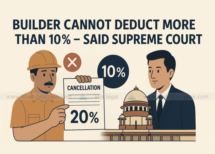 Read More🏗️ IntroductionIn a landmark decision that strengthens consumer rights, the Supreme Court of India has ruled that builders cannot deduct more than 10% of the total flat cost when a buyer cancels the booking. The judgment comes as a relief to countless homebuyers who have faced unfair deductions from real estate developers during cancellations. This ruling sets a powerful precedent and aligns with the principles of fairness and reasonableness under Indian contract and consumer protection law.Background: Why This Issue MattersOver the years, many homebuyers have reported instances where real estate developers deducted 20%, 25%, or even 30% of the total property value when a buyer decided to cancel the booking, often without starting construction or incurring any loss.This unfair trade practice prompted legal intervention, and the judiciary has now taken a stand to protect buyers from arbitrary contract clauses that are heavily biased in favour of builders.Supreme Court Ruling: Key HighlightsIn the case of Wg. Cdr. Arifur Rahman Khan & Ors. v. DLF Southern Homes Pvt. Ltd., the Supreme Court upheld the consumer-friendly interpretation that if the builder has not incurred a substantial loss or started construction, they cannot deduct more than 10% of the booking amount or flat price.Important Takeaways:Maximum Deduction Limit: Builders can deduct no more than 10% in case of cancellation.Beyond 10% is arbitrary and amounts to unjust enrichment.Unilateral terms in builder-buyer agreements that allow excessive deductions are unconscionable and voidable.The builder cannot use delay tactics or unjust contract terms to deny fair refunds.⚖️ Legal Reasoning: Supreme Court’s AnalysisThe Court based its ruling on several legal principles:Principle of Unconscionable ContractsWhen one party (the builder) has excessive bargaining power, the Court can strike down oppressive terms.Citing Central Inland Water Transport Corporation v. Brojo Nath, the Court emphasized that contractual terms must be reasonable and fair.Consumer Protection ActThe Court reaffirmed that a buyer is a consumer and entitled to just treatment under Sections 2(1)(d) & 2(1)(r) of the Consumer Protection Act.Builders indulging in excessive deduction are guilty of unfair trade practices.Doctrine of ReasonablenessBuilders are not permitted to make windfall gains from cancellations.Refund policy must reflect actual losses, not speculative penalties.Other Important Judgments on the SubjectKailash Nath Associates v. DDA [(2015) 4 SCC 136]The Court held that forfeiture of earnest money is only valid if the party has suffered a loss. Builders must prove actual damage for withholding more than 10%.Haryana Urban Development Authority v. Dropadi DeviOnly reasonable forfeiture is allowed. Excessive deduction without justification is illegal.RERA Provisions – Section 18 of RERA Act, 2016The buyer is entitled to full refund with interest if the builder fails to deliver on time. Deductions exceeding 10% are in direct conflict with RERA’s spirit.What It Means for HomebuyersIf you have cancelled your flat booking and the builder is withholding more than 10%, you have a strong legal remedy. The following steps are advised:📋 What You Can Do:Send a legal notice seeking full refund minus 10%.File a complaint with the Real Estate Regulatory Authority (RERA).Approach Consumer Court if builder refuses or delays refund.Maintain booking receipts, payment records, and correspondence as evidence.Precautionary Measures for Future BuyersRead the Builder-Buyer Agreement thoroughly before signing.Negotiate clauses related to cancellation and refund.Prefer builders registered under RERA with transparent refund policies.Get legal vetting of the agreement from a property lawyer.How KHA Advocates Can HelpAt KHA Advocates, we assist homebuyers in fighting against builder malpractices, securing rightful refunds, and filing RERA and consumer complaints. Our team of real estate and litigation experts ensures your legal rights are protected.📞 Book a Consultation: https://khaadvocates.com/book-consultation🏢 Representing clients in Supreme Court, High Courts, RERA & Consumer ForumsConclusionThe Supreme Court’s ruling offers much-needed relief and clarity to homebuyers. By capping the builder’s deduction at 10%, the Court has reaffirmed the principle that contracts cannot override fairness and public interest. Homebuyers must remain informed, vigilant, and assertive in asserting their rights.