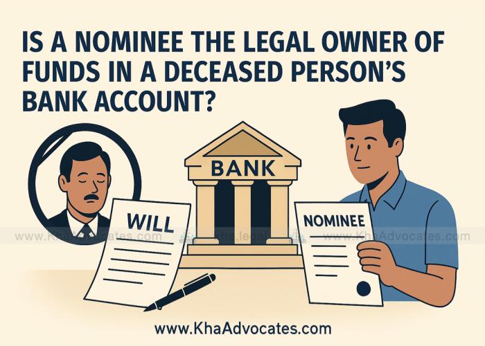 Read MoreIs a Nominee the Legal Owner of Funds in a Deceased Person’s Bank Account?When a person opens a bank account, they are often asked to name a nominee. Many believe that this nominee becomes the rightful owner of the account’s funds after the account holder’s death. However, legally speaking, this understanding is incorrect. In India and many other jurisdictions, the role of a nominee is distinctly different from that of a legal heir. This article explores the legal status of a nominee, their rights, and the remedies available to legal heirs if they are wrongfully deprived.Who is a Nominee?A nominee is a person designated by the account holder to receive the funds from the account in the event of their death. This nomination is made under Section 45ZA of the Banking Regulation Act, 1949 and Rule 2(1) of the Banking Companies (Nomination) Rules, 1985. The purpose of appointing a nominee is to enable the bank to discharge its liability quickly and without requiring legal formalities such as a succession certificate or probate.Key Point: A nominee is merely a trustee, not the owner of the funds.Legal Position of a Nominee vs. Legal HeirsSeveral landmark court judgments have clarified the distinction between nominees and legal heirs. The most notable is the Supreme Court ruling in Sarbati Devi v. Usha Devi (1984 AIR 346) which stated that the nominee is merely a trustee for the legal heirs.In the context of bank accounts, the nominee holds the funds in trust for the legal heirs unless the nominee is also a legal heir. If the deceased has written a will, the distribution of the funds must follow the instructions in the will. If there is no will, the assets are distributed according to the personal law applicable to the deceased (e.g., Hindu Succession Act, Muslim Personal Law, Indian Succession Act, etc.).Supreme Court JudgmentsSarbati Devi vs. Usha Devi (1984) – Held that nomination does not override succession laws; the legal heirs are entitled to the funds.Ramanathan vs. State Bank of India (2006) – Reinforced that the nominee is only a trustee for the legal heirs.Shakti Yezdani v. Jayanand Jayant Salgaonkar (2017, SC) – Held that nomination under the Companies Act and banking law does not override the succession rights of legal heirs.Thus, nomination ensures smooth transfer from the bank’s side but does not confer legal ownership.Bank’s ResponsibilityBanks are not responsible for verifying the rightful heir before releasing the funds to a nominee. Their legal obligation ends once the money is handed over to the nominee. It is up to the legal heirs to claim their rightful share from the nominee if they believe they have been wrongfully excluded.When a Nominee Deprives Legal Heirs: What is the Remedy?If a nominee refuses to share the funds with the rightful heirs, legal action can be taken. The following remedies are available:1. Civil Suit for RecoveryLegal heirs can file a civil suit for recovery of their share in the funds. The suit should be supported by succession documents, such as a will, legal heir certificate, or succession certificate.2. Probate or Letters of AdministrationIf there is a will, it should be probated (where required) to establish the rights of the heirs. In the absence of a will, a court may grant letters of administration to distribute the estate as per applicable succession laws.3. Injunction OrdersCourts can also grant injunctions to prevent the nominee from withdrawing or utilizing the funds until rightful ownership is determined.4. Mediation or Family SettlementIn cases involving family disputes, mediation can help arrive at a mutually agreeable settlement without prolonged litigation.Legal Heirs’ Rights Over Bank FundsUpon the death of the account holder, succession laws come into play.Applicable Succession Laws:Hindu Succession Act, 1956 (for Hindus, Sikhs, Jains, Buddhists)Muslim Personal Law (Shariah) (for Muslims)Indian Succession Act, 1925 (for Christians and others)If a will exists, the executor must distribute the estate as per its terms. If the deceased died intestate (without a will), the property is distributed among Class I heirs, which usually include:SpouseChildrenMotherOther direct descendantsA nominee cannot override these rights.Best Practices to Avoid DisputesMake a Will: Ensure your intentions are clearly mentioned in a registered will.Appoint the Right Nominee: Preferably appoint a nominee who is also a legal heir.Inform Family Members: Make your heirs aware of your nomination and estate planning.ConclusionA nominee does not automatically become the owner of funds in a deceased person’s bank account. Instead, the nominee acts as a custodian until the legal heirs claim their rightful share. Misconceptions around nomination often lead to disputes. Understanding the legal framework and taking proper estate planning measures can prevent conflict and ensure smooth transmission of assets.Want to know more about your legal rights as an heir?Visit 👉 www.KhaAdvocates.com or book a consultation now.