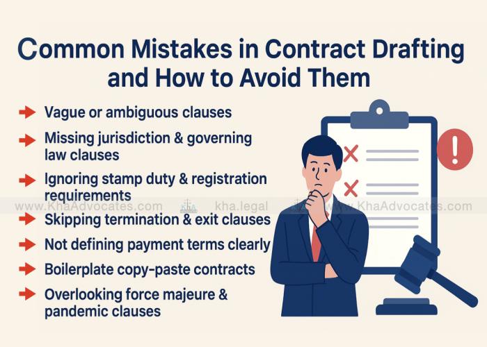Read MoreIntroductionContracts are the backbone of every business relationship. Whether you’re a startup signing your first vendor agreement or a corporation negotiating a multi-crore deal, a poorly drafted contract can lead to disputes, losses, and even litigation. In India, contract drafting is governed primarily by the Indian Contract Act, 1872, along with provisions of the Indian Stamp Act, 1899, and relevant judgments by the Supreme Court and High Courts.In this blog, we’ll explore the most common mistakes made during contract drafting, legal consequences, landmark judgments, and practical tips on how to avoid them.1. Vague or Ambiguous ClausesMistake: Using unclear terms such as “reasonable time,” “best efforts,” or “mutual understanding.”Consequence: Leads to multiple interpretations and disputes.Case Law: ONGC v. Saw Pipes Ltd. (2003) – The Supreme Court held that vague clauses can render contracts unenforceable if they lack certainty.Solution: Always use precise, measurable language. For example, instead of “deliver goods on time,” specify “deliver 500 units within 30 days.”2. Missing Jurisdiction & Governing Law ClausesMistake: Failing to specify which court or state laws will govern disputes.Consequence: Parties may file cases in multiple jurisdictions, leading to unnecessary litigation.Case Law: Swastik Gases Pvt. Ltd. v. Indian Oil Corporation Ltd. (2013) – The Supreme Court emphasized the importance of jurisdiction clauses.Solution: Insert a clear clause like: “This Agreement shall be governed by the laws of India, and courts at Kolkata shall have exclusive jurisdiction.”3. Ignoring Stamp Duty & Registration RequirementsMistake: Contracts like leases, partnerships, or property agreements often remain unstamped or unregistered.Consequence: Courts may refuse to admit such documents as evidence.Law: Indian Stamp Act, 1899 and Registration Act, 1908.Example: An unstamped lease deed exceeding 12 months can be declared invalid.Solution: Always calculate proper stamp duty and register agreements wherever required.4. Skipping Termination & Exit ClausesMistake: Not defining conditions for termination or exit of parties.Consequence: Leads to endless disputes when parties want to exit.Case Law: Tata Consultancy Services Ltd. v. Cyrus Investments Pvt. Ltd. (2021) – The importance of clear exit clauses in shareholder agreements was highlighted.Solution: Define termination events (breach, insolvency, force majeure) and lay down notice periods, penalties, and handover procedures.5. Not Defining Payment Terms ClearlyMistake: Contracts state “payment shall be made promptly” without defining mode, due date, or late fee.Consequence: Disputes over payment delays and penalties.Law: Indian Contract Act, 1872 (Section 73 – Compensation for Breach of Contract).Solution: Specify “Payment of ₹10,00,000 shall be made via bank transfer within 15 days of invoice, with 12% interest applicable on delays.”6. Boilerplate Copy-Paste Contracts Mistake: Using internet templates without customization.Consequence: Many clauses may be irrelevant, illegal, or contradictory.Case Study: A startup copied an NDA template online, which did not comply with Indian law. During litigation, the court rejected parts of the NDA.Solution: Always customize contracts based on Indian law, industry, and party requirements.7. Overlooking Force Majeure & Pandemic ClausesMistake: Not including provisions for unforeseen events like pandemics, wars, or natural disasters.Case Law: Halliburton Offshore Services v. Vedanta Ltd. (2020, Delhi HC) – The court recognized COVID-19 as a force majeure event.Solution: Define force majeure events, notification timelines, and consequences (suspension or termination).Practical Tips for Safe Contract DraftingHire a Lawyer: Professional vetting prevents loopholes.Review Twice: Both parties should review drafts carefully.Update Regularly: Revise old contracts to include latest laws and judgments.Use Clear Language: Avoid jargon, keep it simple.FAQs on Contract DraftingQ1. Is an oral contract valid in India?Yes, oral contracts are valid under the Indian Contract Act, 1872, but difficult to prove in court. Always prefer written contracts.Q2. What makes a contract legally enforceable in India?Offer, acceptance, lawful consideration, free consent, lawful object, and capacity of parties.Q3. Can a contract be on plain paper without stamp duty?Yes, it’s valid but may not be admissible in court without proper stamping.Q4. What happens if a contract has a missing clause?Courts may interpret it against the drafter, leading to unfavorable judgments.Q5. How can startups ensure safe contract drafting?By consulting a corporate lawyer to draft customized agreements like Founders’ Agreement, Shareholders’ Agreement, and Employment Contracts.Q6. Do contracts need witnesses?Not always. Only certain agreements like property deeds, wills, or surety bonds need attestation.Q7. Can e-contracts and digital signatures be used in India?Yes, under the Information Technology Act, 2000, e-signatures and e-contracts are legally valid.At KHA Advocates, we specialize in contract drafting, vetting, and negotiation for startups, corporates, and individuals. Our expert lawyers ensure your agreements are legally enforceable, customized to your needs, and dispute-proof.👉 Avoid costly litigation – Book a consultation with KHA Advocates today!